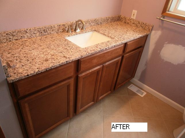 This was a full kitchen remodel including; new floor tile, tile granite counter tops, sink, faucet, garbage disposal, oven and dishwasher.