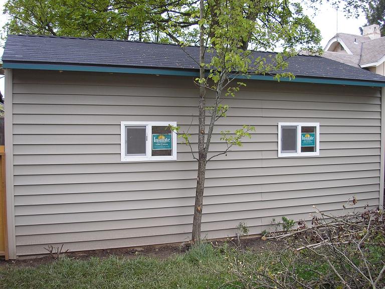 This was a full 10'x20' garage build from the ground up, including the concrete pad and electric garage door opener.