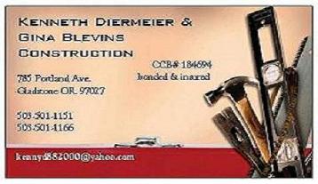 Welcome to the official Kenneth Diermeier and Gina Blevins Construction website. We hope you enjoy looking at the pictures of some of the recent work we have done!